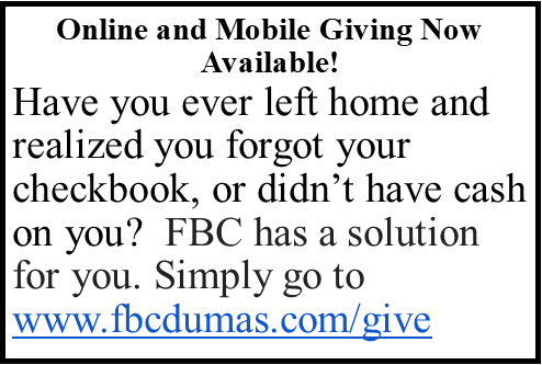 We take Jesus for granted here in Dumas, Arkansas. Let us never waste an opportunity to share Him with those here at home as well as in places far away.
